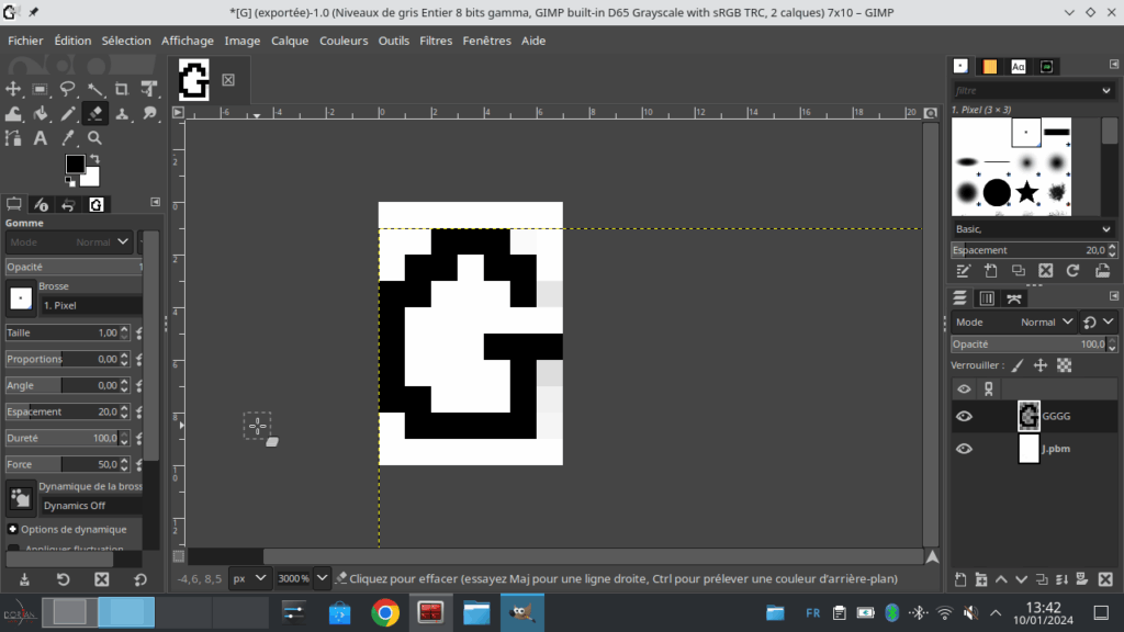 J.pbm: Netpbm image data, size = 7 x 10, bitmap Un exemple bitmap de la lettre « J », ASCII text