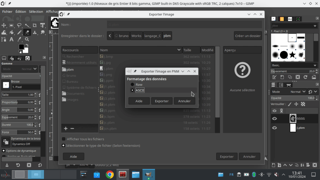 CrĂ©ations d’images au format ASCII pbm non compressĂ© et compressĂ© (notion)