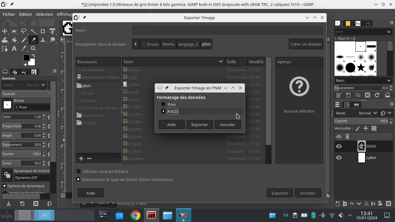 Vous pouvez a coté du fichier pbm en ascii (Gascii.pbm) renommer en Graw.pbm en Raw