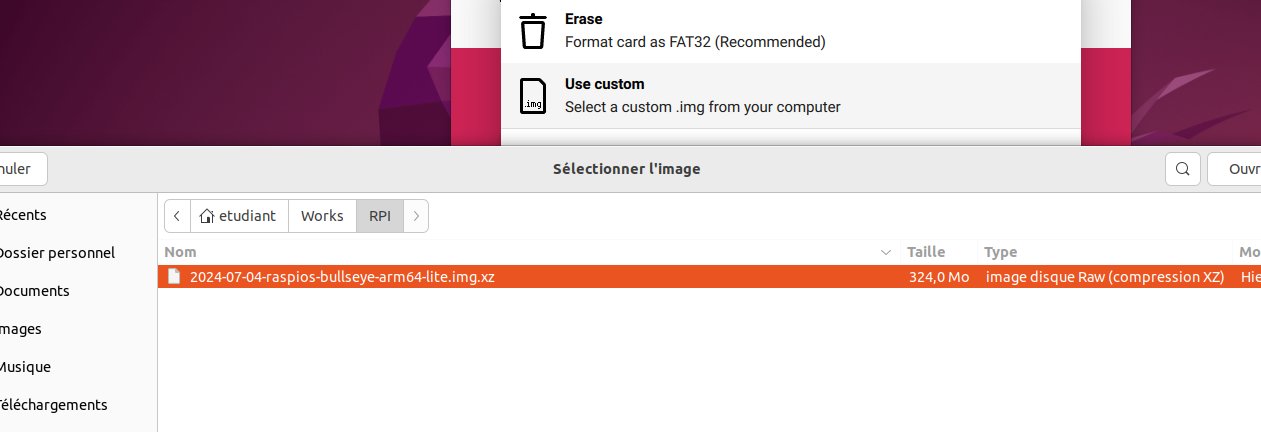 pour exemple le fichier est : 2024-07-04-raspios-bullseye-arm64-lite.img.xz