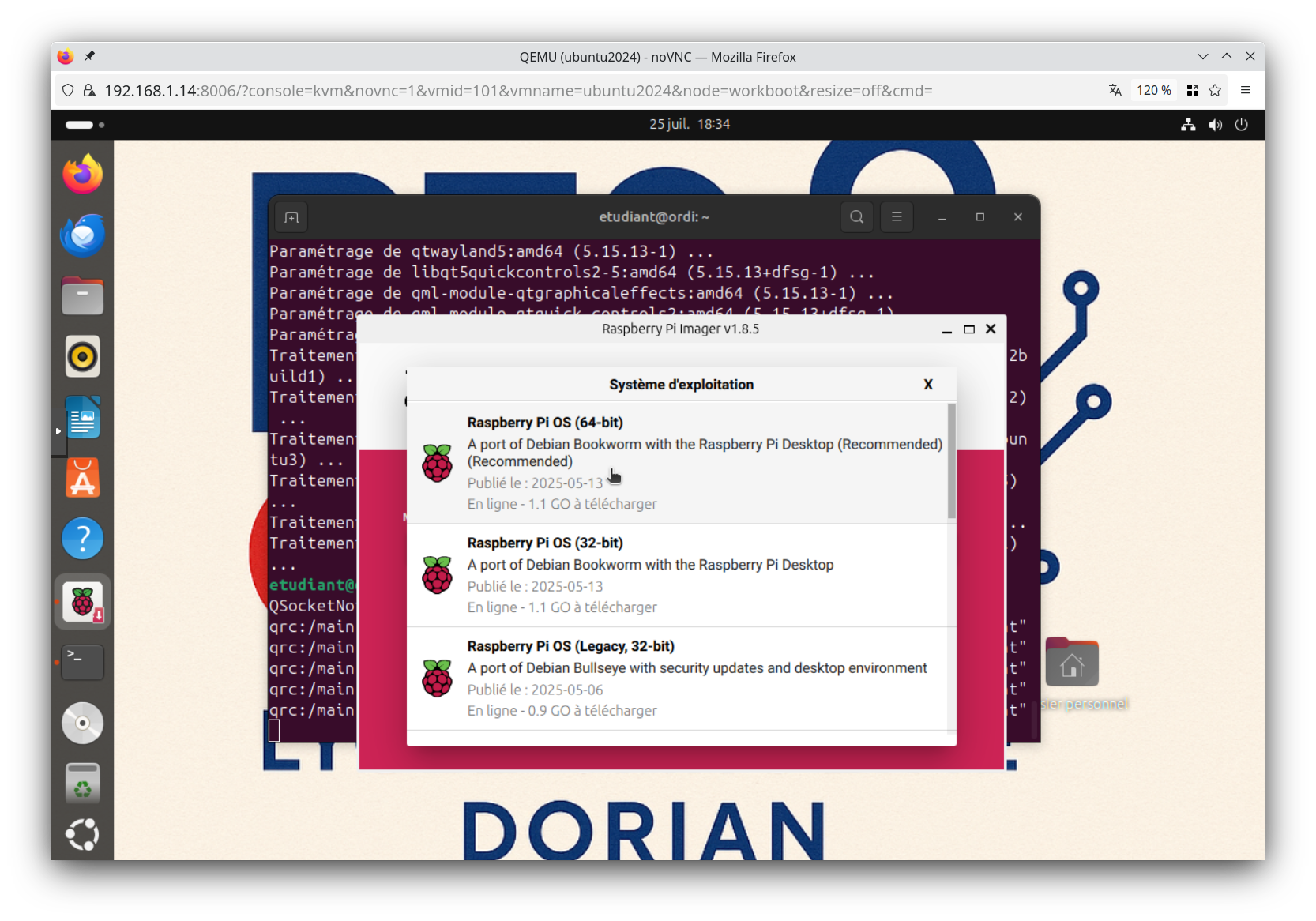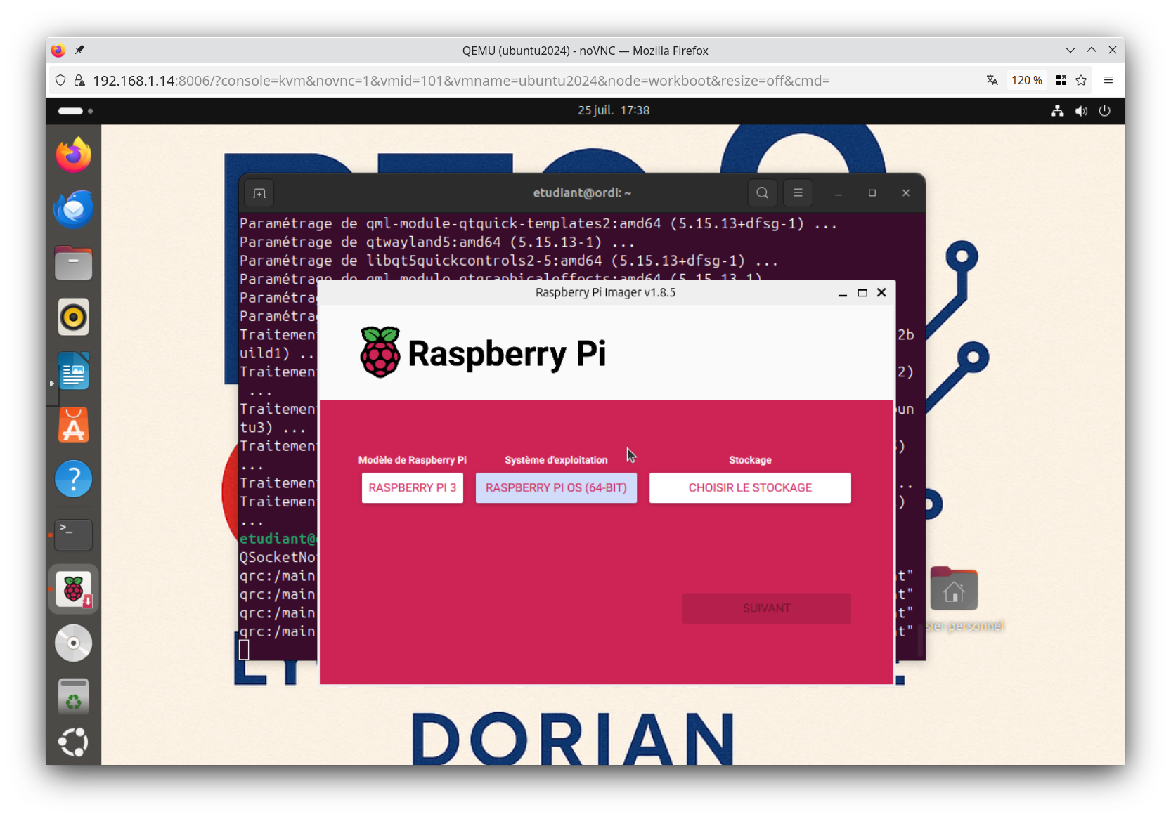 - Mise en service d’une distribution RASPI OS 64 (Debian 12) Bookworm