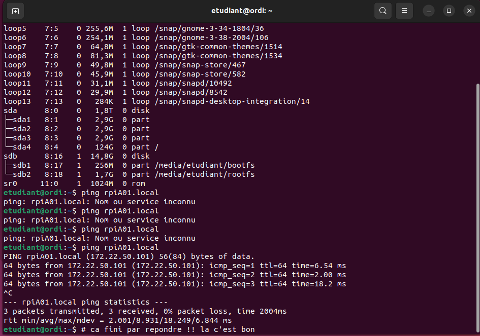 L’intérêt de ces manipulations , c’est que l’on peut intervenir sur la carte SD et éventuellement récupèrer des data , ou corriger le système , ça pourra être utile en projet.