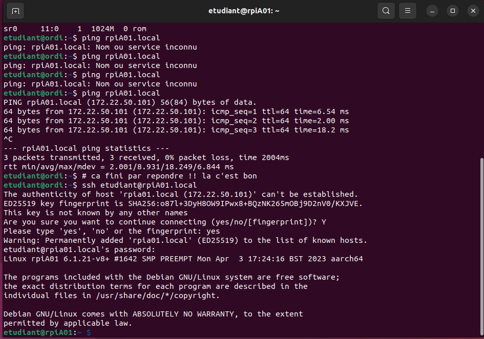 Comme nous n’avons pas d’écran et de clavier , pour faciliter le TP, on va utiliser ssh