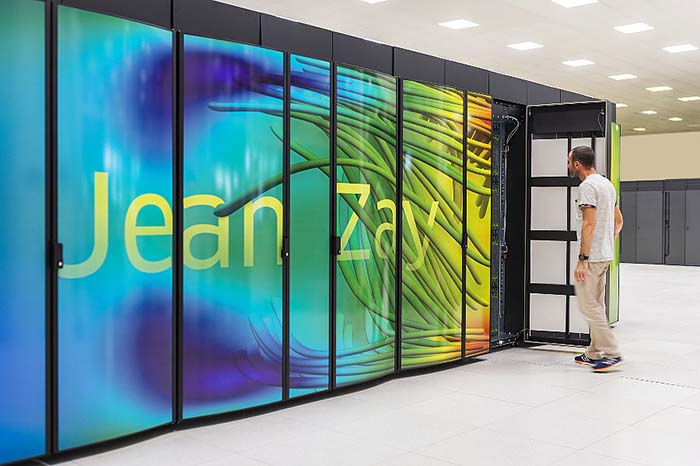 Supercalculateur Jean Zay, nommé ainsi en l’honneur du ministre de l’Éducation nationale qui fut l’artisan, avec Jean Perrin, de la création du CNRS. Capable d’effectuer 13,9 millions de milliards d’opérations par seconde dans sa configuration initiale installée à l’été 2019, ce supercalculateur convergé permet d’étendre les modes d’utilisation classiques du calcul de haute performance (HPC) à de nouveaux usages pour l’intelligence artificielle (IA). En plus de ses 1 528 noeuds de 40 coeurs Intel Cascade Lake à 2,5 GHz, il comprend 261 noeuds « convergés hybrides accélérés » composés chacun de 40 coeurs à 2,5 GHz et de 4 GPUs NVIDIA V100. Chaque noeud dispose de 192 Go de mémoire et chaque GPU de 32 Go. Conçu par Hewlett Packard Enterprise, ce supercalculateur HPE SGI 8600 a été acquis en 2019 par le Genci (Grand équipement national de calcul intensif) et est opéré par l’IDRIS, localisé sur le plateau de Saclay. UPS851 Institut du Développement et des Ressources en Informatique Scientifique 20190051_0007