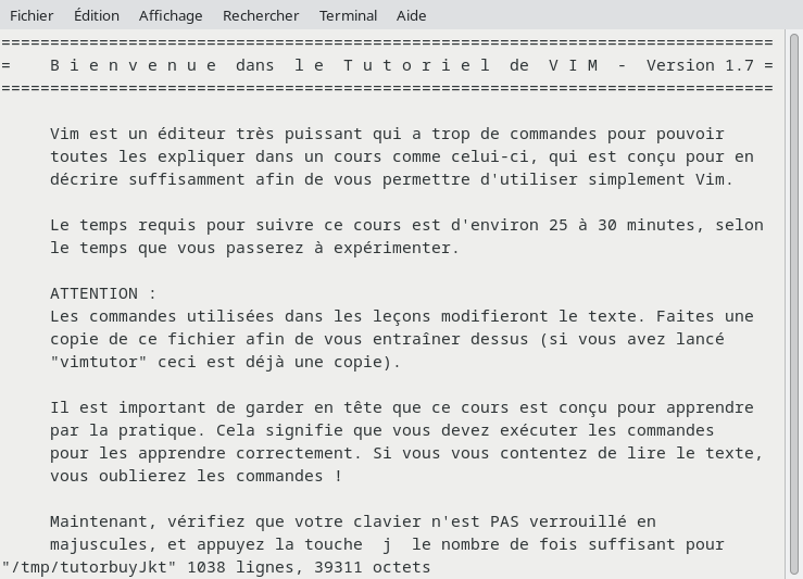Nous allons utiliser vimtutor pour découvrir la puissance de cet éditeur, il n’est pas obligatoire de tout connaitre. Mais le minimum et le reste vient en pratiquant !