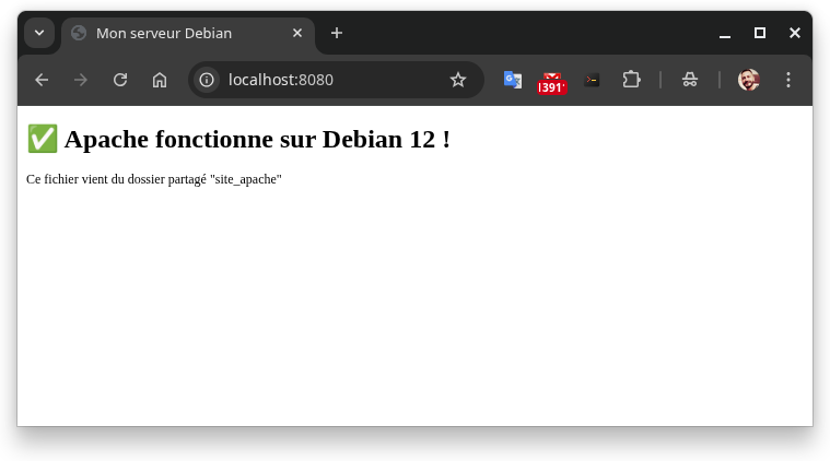 <h1>âś… Apache fonctionne sur Debian 12 !</h1>